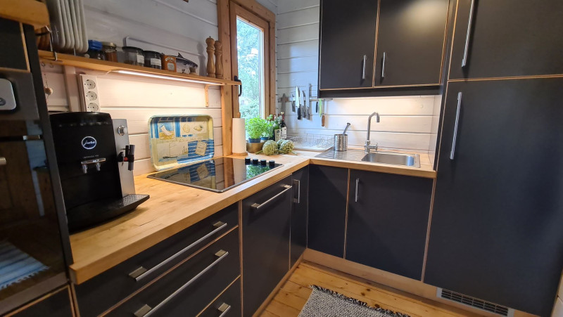 - Moderne voll ausgestattete Küche mit Spülmaschine, Mikrowelle, Backofen.