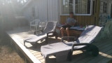 La terrasse est spacieuse et fait le tour de la maison sur deux côtés, de sorte que le soleil est toujours présent.