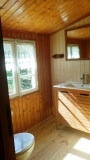Das Bad ist großzügig gestaltet und komplett neu. Es gibt sowohl eine Innendusche, als auch eine Außendusche.
