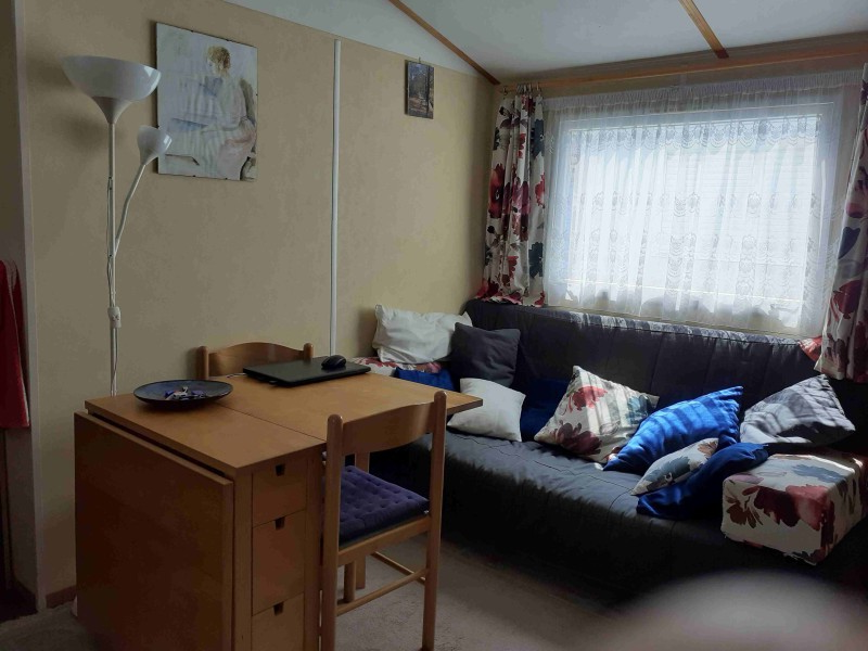 Mobilheim: 2 Schlaffzimmer, Grosse Zimmer Doppelbett 140 x 200, Schrancken, Badezimmer mit Waschtisch (ohne Douche)