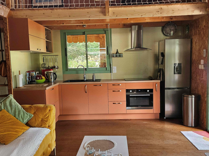 - Grand séjour climatisé : canapé 3 places, transat, cuisine ouverte entièrement équipée